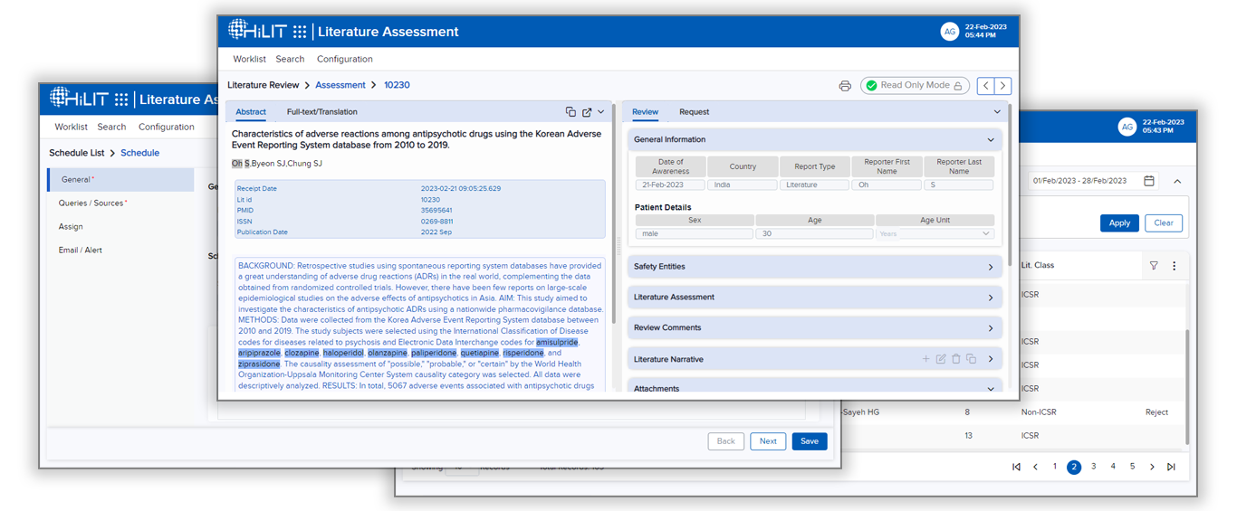 The ALAT system is also integrated with the HiLIT platform’s case intake module to ease the workflow of reporting safety information to safety databases and regulatory reporting.