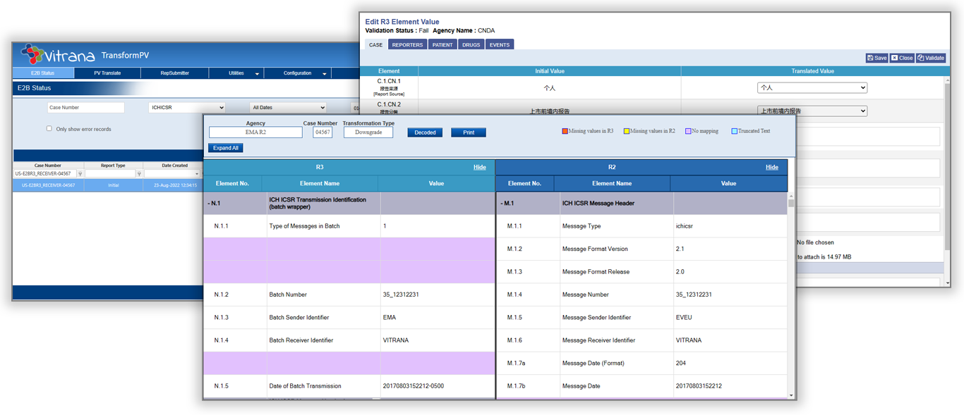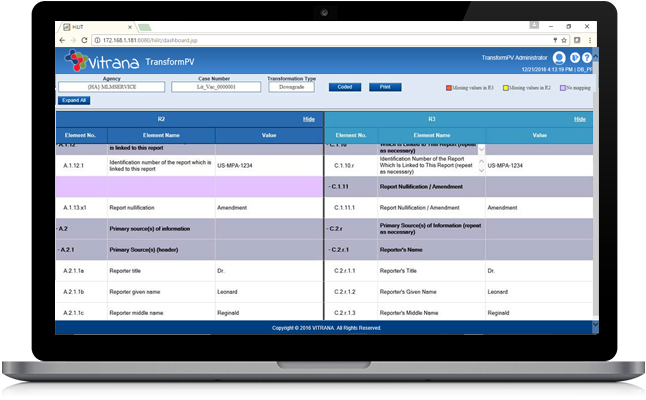 Vitrana’s TransformPV will enable existing safety applications to transmit and receive E2B (R3) ICSR XML’s and R3 ACK files. The E2B (R3) adapter allows organizations to transform E2B (R2) files into E2B (R3) files and vice-versa.